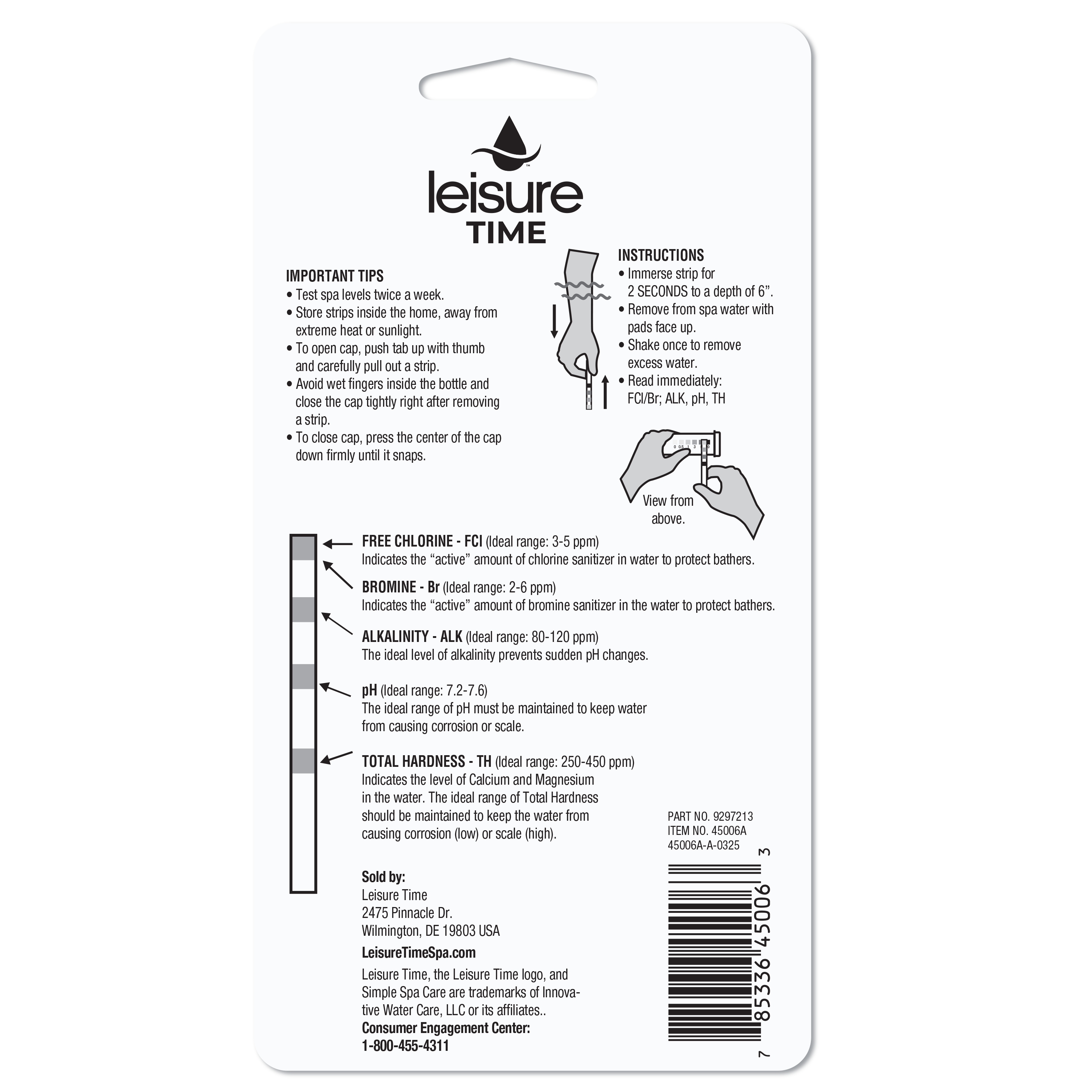 - Quickly and simply test for pH level imbalances in your spa or hot tub with Leisure Time® Test Strips