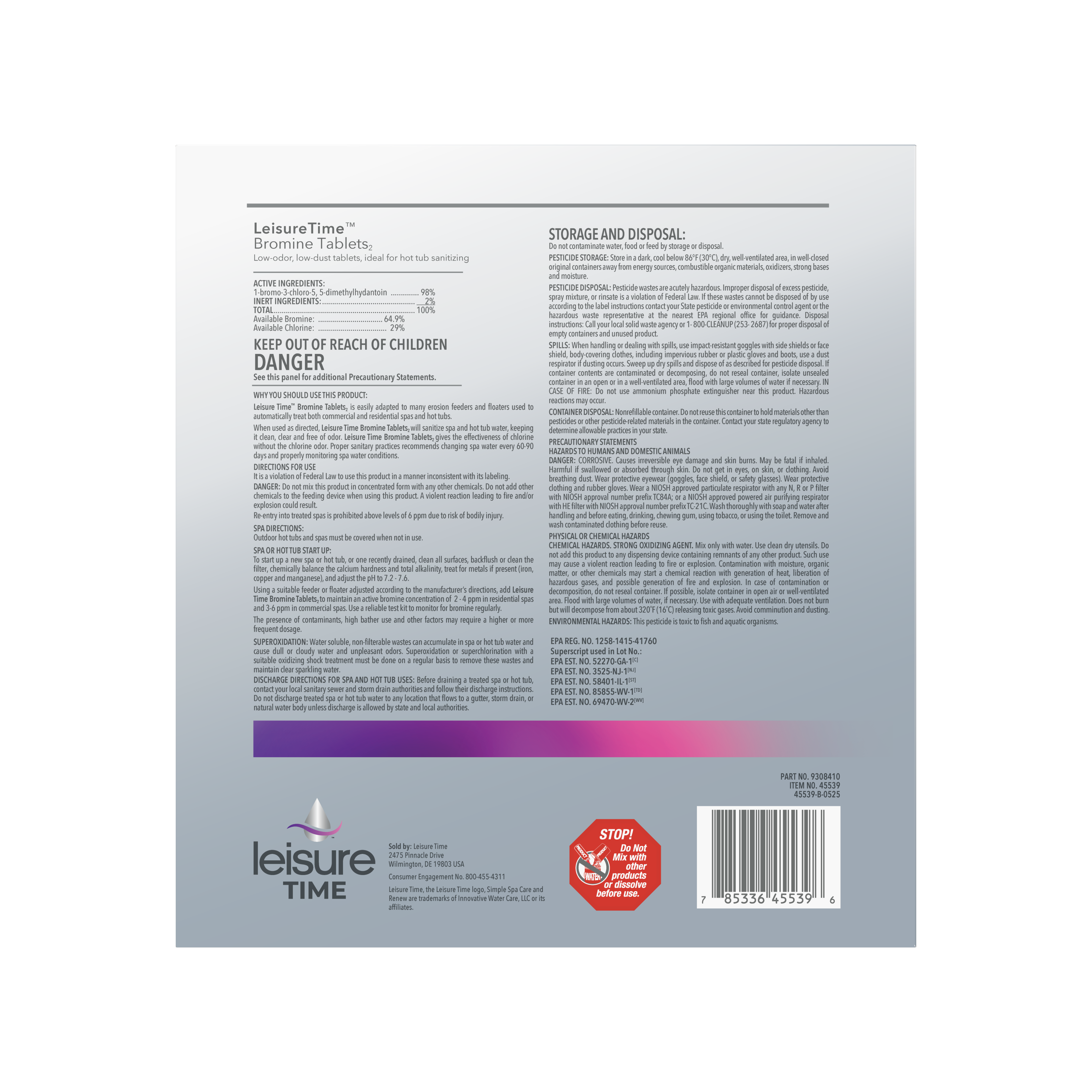 Leisure Time® Bromine Quick Start Kit simplifies spa startup by providing the essential products needed to establish a complete bromine sanitizing system. Designed for easy setup, it helps ensure balanced, clean, and clear spa water from the very first fill.